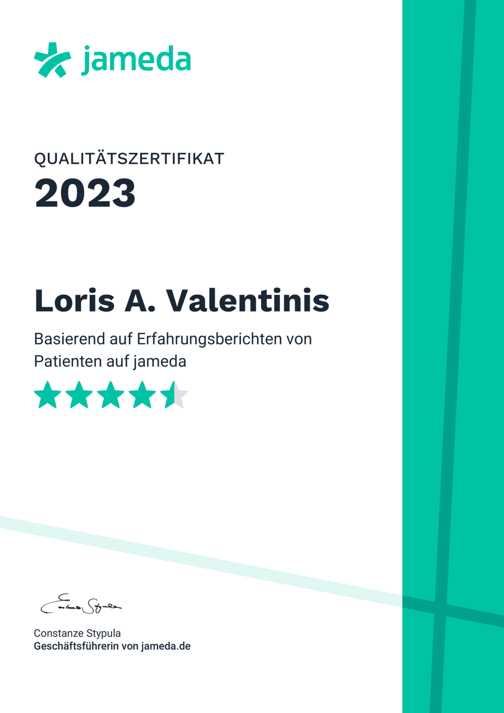ZA Loris A. Valentinis praktiziert seit 2004 in der Zahnarztpraxis Zentrum Zahngesundheit im Tätigkeitsschwerpunkt Endodontologie. Gemeinsam mit Dr. Frank-Jörg Ulmer ist er Inhaber der Zahnarztpraxis Zentrum Zahngesundheit. Er ist Mitglied in namhaften Fachgesellschaften. Das Curriculum in Endodontologie hat der erfahrene Spezialist bereits im Jahr 2006 erfolgreich absolviert. Er bildet sich kontinuierlich in den Bereichen Endodontologie, Zahnerhaltung, ästhetische Zahnmedizin und Sedierung weiter.
